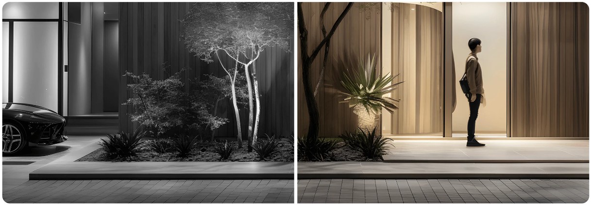 Камера оснащена белой подсветкой, которая автоматически включается ночью при обнаружении человеческой фигуры, обеспечивая цветное изображение в темном окружении.